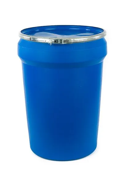 BPA free to be suited as a water barrel, this blue open head 30 gallon plastic drum tapered is just as ready to safely store food, chemicals, liquids, cosmetics, electronic parts, solids, hardware, and household products.